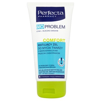 Perfecta Pharmacy, No Problem, Comfort, Matujący żel do mycia twarzy z mikrogranulkami przeciw zaskórnikom, 150 ml
