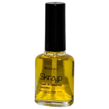 Olejek "Skrzyp" posiada doskonałe właściwości pielęgnacyjne. Zmniejsza szorstkość skórek wokół paznokci, natłuszcza odżywia i poprawia wygląd płytki paznokciowej. Posiada delikatny rumiankowy zapach.