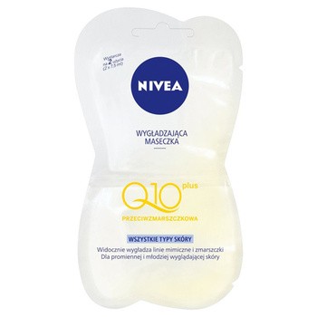 NIVEA wygładzająca maseczka przeciwzmarszczkowa Q10, dzięki nawilżającej technologii Hydra IQ maseczka pozostawia skórę niezwykle nawilżoną. A wysoce skoncentrowana formuła z naturalnie występującym w skórze koenzymem Q10: