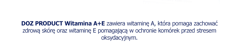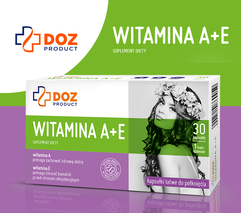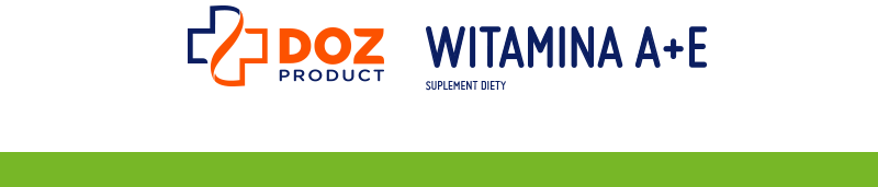 DOZ PRODUCT WITAMINA A + E - suplement diety w postaci kapsułek łatwych do połknięcia, uzupełniający codzienną dietę w witaminy A i E. Produkt przeznaczony dla osób dorosłych.