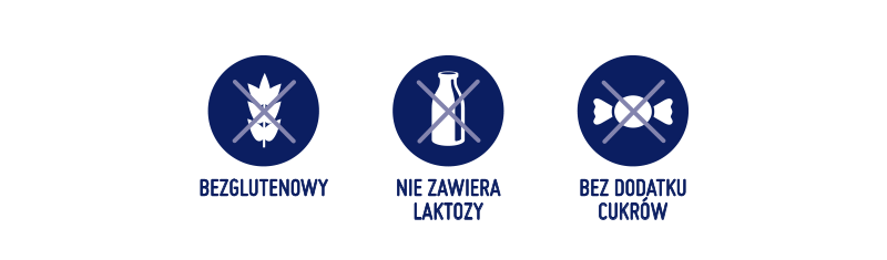 Produkt bezglutenowy. Nie zawiera laktozy. Bez dodatku cukrów.