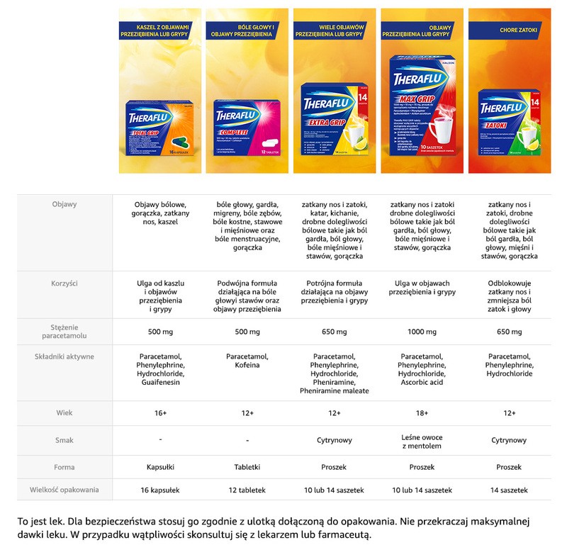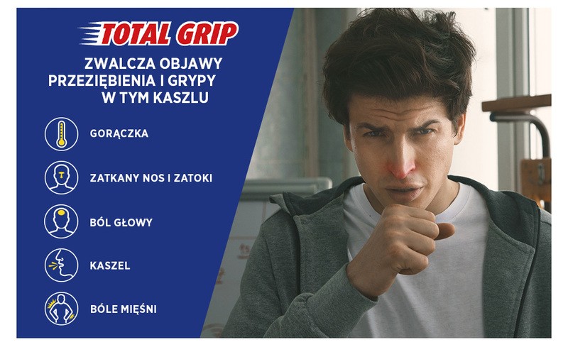 - Ważne jest, aby przyjmować lek Theraflu Total Grip tylko wtedy gdy występują wszystkie następujące objawy: ból, gorączka, przekrwienie błony śluzowej nosa i mokry kaszel.