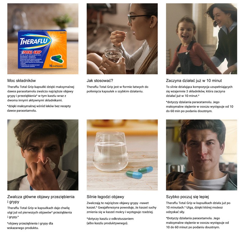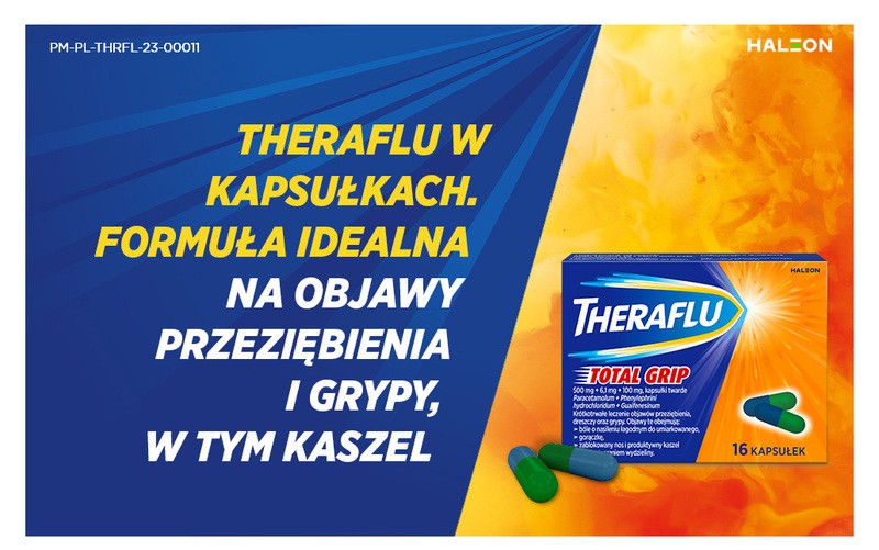 Theraflu Total Grip - produkt leczniczy stosowany do krótkotrwałek leczenia objawów przeziębienia, dreszczy oraz grypy.