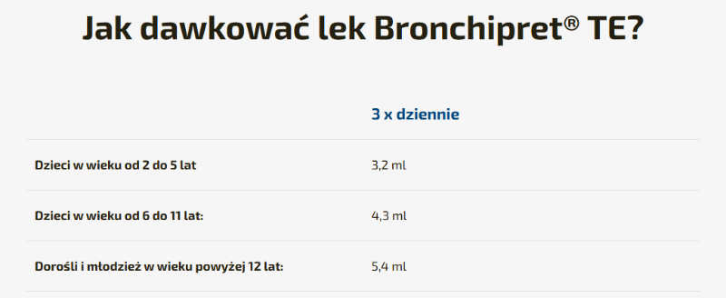 Jeżeli lekarz nie zaleci inaczej, lek Bronchipret TE należy przyjmować 3 razy na dobę: