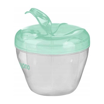 Pojemnik na mleko w proszku marki Babyono pozwala przechować 4 porcje suchego mleka w proszku. Mleko modyfikowane powinno być podane dziecku zaraz po przygotowaniu, dlatego nie można przechowywać już przygotowanego pokarmu. Pojemnik Babyono służy do przechowywania przez krótki czas porcji mleka w proszku na 4 karmienia. Każda przegródka mieści około 8 miarek mleka w proszku. Specjalny otwór-dozownik z klapką w pokrywie ułatwia przesypanie proszku do butelki. Pojemnik wykonany jest z bezpiecznego tworzywa, wolnego od bisfenolu A.