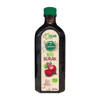 ZIELNIK DOZ BIO Burak, sok – zawiera 99,97% soku z buraków ćwikłowych z koncentratu oraz dodatek ekologicznego koncentratu soku z aceroli. Sok jest produktem naturalnym, dlatego kolor, zapach i smak poszczególnych partii mogą się nieznacznie różnić.