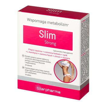SlimStrong - suplement diety zawierający w swoim składzie wyciągi roślinne z czerwonej herbaty i fasoli zwyczajnej. Preparat przeznaczony dla osób dorosłych.