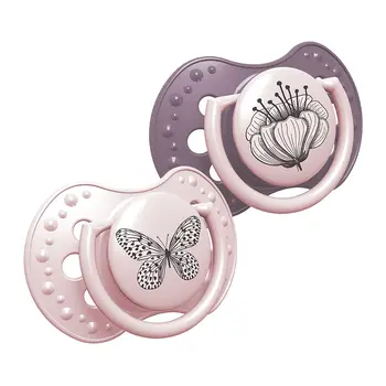 Uspokajający dynamiczny smoczek silikonowy Botanic Girl Canpol Lovi ze wzorami kwiatka i motylka to produkt dedykowany dziewczynkom po 18 miesiącu życia. Smoczek Canpol zapewnia swobodne oddychanie oraz połykanie, a świecący w ciemności uchwyt ułatwia odnajdywanie go w mroku. Powstał z bezsmakowego, bezzapachowego silikonu najwyższej jakości. Jest wolny od BPA.