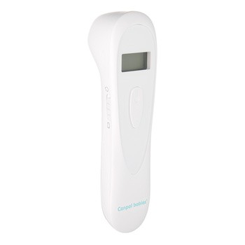 Wyrób medyczny w postaci bezdotykowego termometru. Urządzenie pozwala dokonać szybkiego i precyzyjnego pomiaru praktycznie w każdych warunkach. Jest doskonałym akcesorium dla młodych mam, gdyż umożliwia mierzenie temperatury nie tylko ciała, ale także różnych powierzchni (w tym wody, posiłków i napojów) oraz otoczenia.