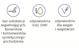 Produkt opracowany z myślą o osobach na diecie ubogiej w źródła DHA. Odpowiednia ilość składnika3