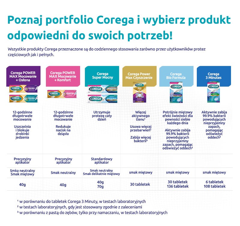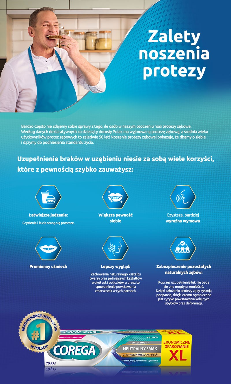 Krem do protez Corega Super Mocny przeznaczony jest do mocowania protez zębowych całkowitych i częściowych.