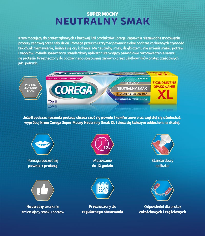Corega Super Mocny Neutralny Smak, krem mocujący do protez zębowych