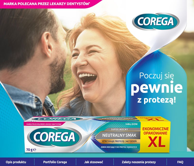 – wyrób medyczny przeznaczony do mocowania protez zębowych. Produkt charakteryzuje się neutralnym smakiem i siłą działania, która pozwala przytwierdzić i utrzymać protezę we właściwym miejscu przez cały dzień.