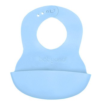 BabyOno, miękki śliniak z kieszonką i regulowanym zapięciem, niebieski, 6 m+, 1 szt.