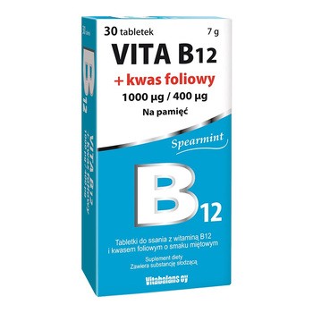 Vitabalans Vita B12 + kwas foliowy, tabletki do ssania, smak miętowy, 30 szt.