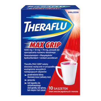 Theraflu Max Grip, 1000 mg+10 mg+70 mg, proszek do sporządzania roztworu doustnego, 10 saszetek