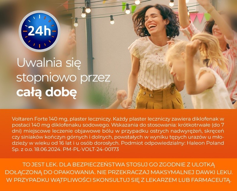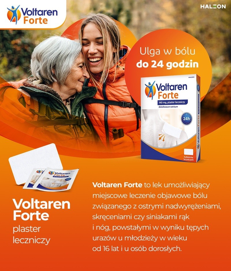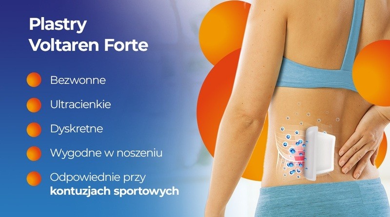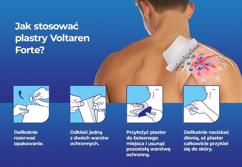 Voltaren Forte to lek w postaci plastra leczniczego do krótkotrwałego stosowania u osób dorosłych i młodzieży w wieku powyżej 16 lat. Lek Voltaren Forte stosuje się miejscowo w objawowym leczeniu bólu towarzyszącego nadwyrężeniom, zwichnięciom, stłuczeniom. Zawiera w składzie diklofenak należący do niesteroidowych leków przeciwzapalnych (NLPZ).