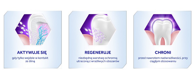 - rozpoczyna proces odbudowy wrażliwych zębów już po dwóch minutach szczotkowania,
