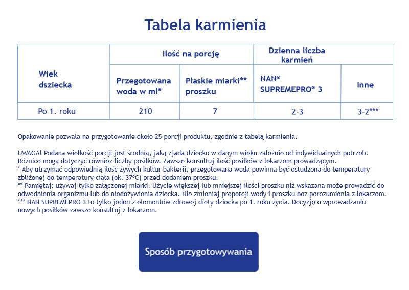 *Nan Supremepro 3 to tylko jeden z elementów zdrowej diety dziecka po 1. roku życia. Decyzje o wprowadzaniu nowych posiłków zawsze konsultuj z lekarzem.