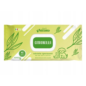 Record Salviette Igienizzanti Citronella, chusteczki pielęgnacyjne dla psów i kotów, 40 szt.