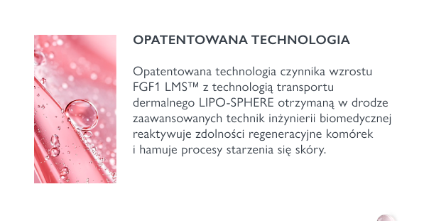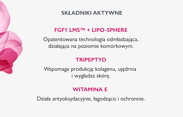 Składniki aktywne: LIPO-SPHERE FGF1 LMS, tripeptyd, witamina E.