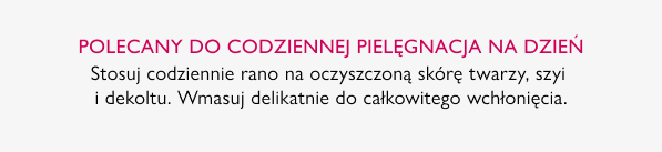 Dla każdego rodzaju skóry, również bardzo wrażliwej. Szczególnie polecany dla skóry cienkiej, wiotkiej, z widocznymi liniami i zmarszczkami, utratą elastyczności i sprężystości.