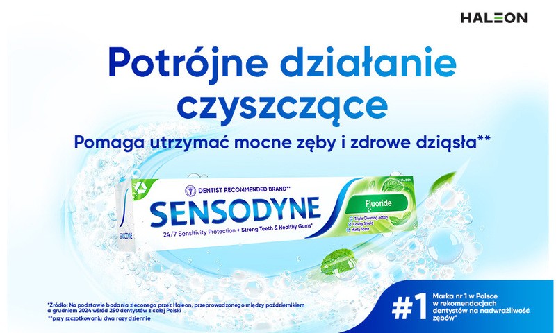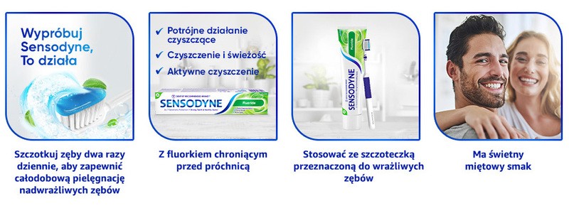 Pasta do zębów – zapewnia codzienną ochronę przed nadwrażliwością, jednocześnie dbając o higienę jamy ustnej. Łagodzi ból wywołany przez zimno, ciepło czy słodkie pokarmy, a dzięki zawartości fluorku wzmacnia szkliwo i chroni przed próchnicą. Idealna do codziennego stosowania.