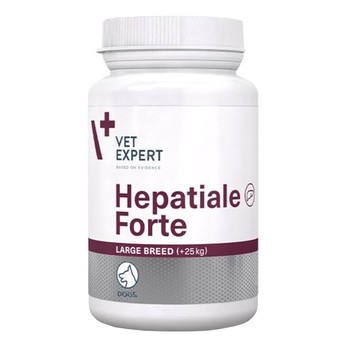 Vet Expert Hepatiale Forte Large Breed to preparat przeznaczony dla psów ras dużych, wspomagający prawidłowe funkcjonowanie wątroby. Preparat łączy działanie fosfolipidów, L-rgininy i L-glutaminy. Preparat polecany jest do wspomagania funkcji wątroby w przypadku podejrzenia jej zaburzeń oraz wspomagająco w przewlekłej niewydolności wątroby.