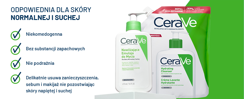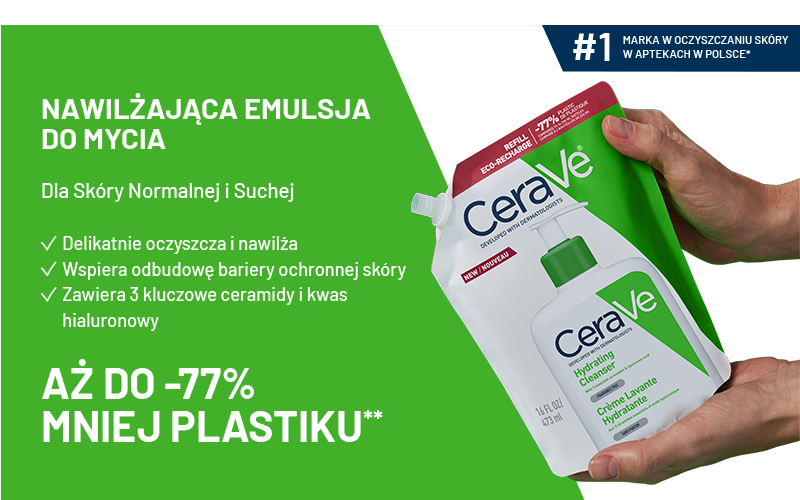 Nawilżająca emulsja do mycia dla skóry normalnej i suchej – oczyszcza skórę twarzy i ciała, dba o zachowanie odpowiedniego nawilżenie oraz pielęgnuje jej naturalną barierę ochronną. Zawiera kompozycję trzech ceramidów i kwas hialuronowy oraz technologię MVE (Multivesicular Emulsion Technology). Produkt dostępny w ekologicznym opakowaniu typu refill, które pomaga ograniczyć zużycie plastiku.