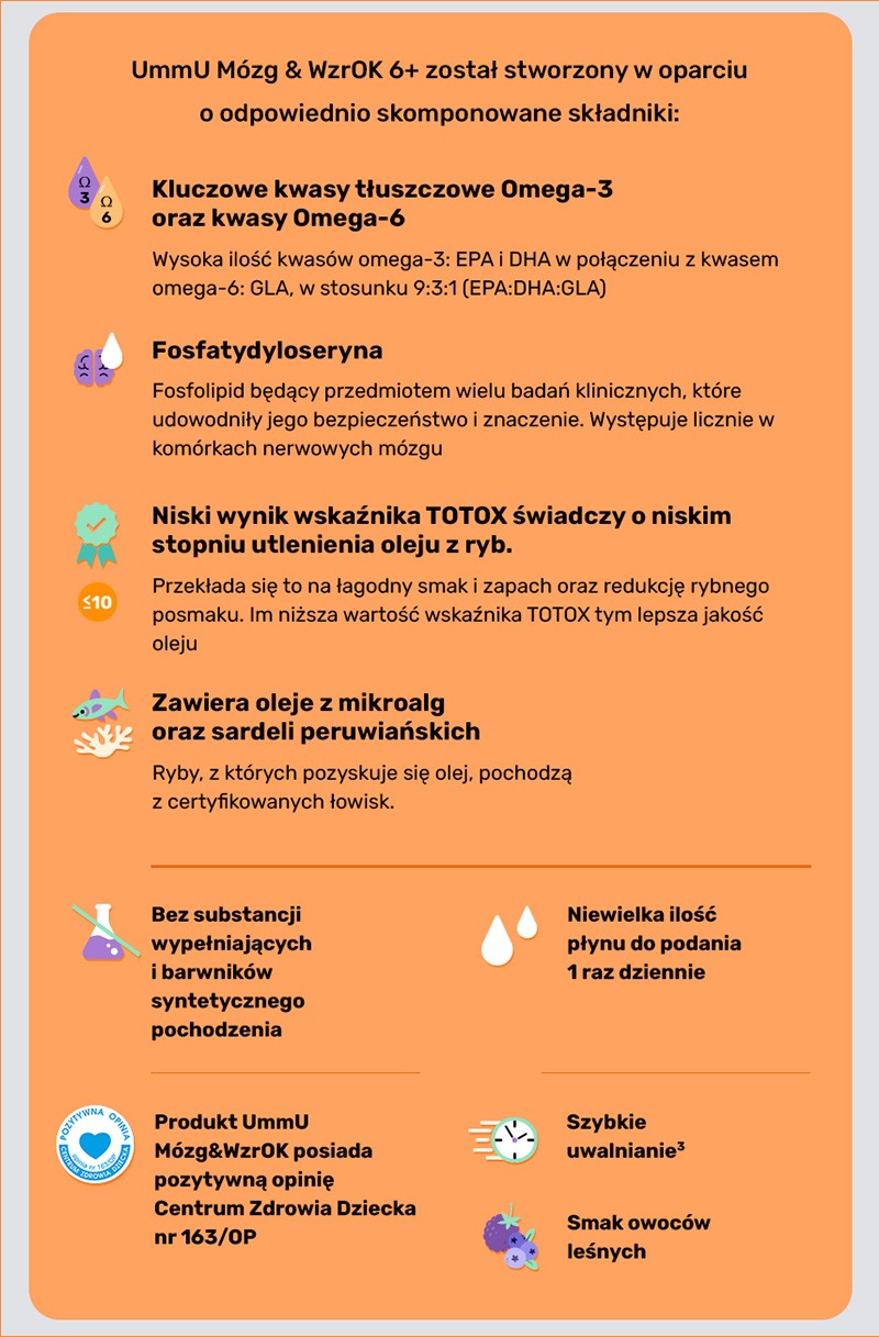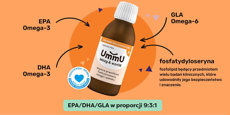 UmmU Mózg & WzrOK 6+ to połączenie kwasów tłuszczowych omega-3,