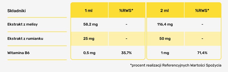 | Składniki | 1 ml | %RWS* | 2 ml | %RWS* |