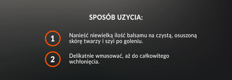 Po zakończeniu golenia nanieś niewielką ilość balsamu na oczyszczoną skórę twarzy i szyi. Wmasuj delikatnie aż do wchłonięcia. Stosuj codziennie, by zapewnić skórze regenerację oraz komfort przez cały dzień.