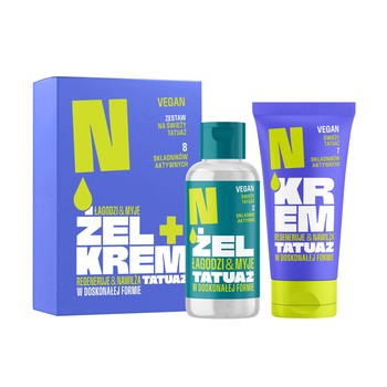 Zadbaj kompleksowo o swoje tatuaże tuż po ich wykonaniu! Zestaw to duet stworzony specjalnie do pielęgnacji świeżych tatuaży – delikatny żel do mycia oraz krem regenerujący. Żel delikatnie oczyszcza, koi i odświeża skórę, nie wywołując podrażnień. Krem intensywnie nawilża, regeneruje i chroni, wzmacniając barierę ochronną skóry. Dodatkowo łagodzi swędzenie, redukuje podrażnienia i podkreśla intensywność kolorów tatuażu, chroniąc je przed blaknięciem. Razem tworzą kompleksową rutynę, która wspiera proces gojenia, przynosi ulgę i sprawia, że tatuaż wygląda doskonale. Produkty szybko się wchłaniają, są bezpieczne nawet dla skóry wrażliwej i przyjazne weganom. Zestaw zawiera: