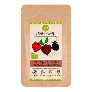 Helpa, Bio Łyżka Smaku Truskawka Burak Jeżyna – połączenie trzech ekologicznych składników: słodkiej truskawki, aromatycznej jeżyny oraz cennego w diecie buraka. Liofilizacja pozwala zachować ich smak, kolor oraz większość witamin, minerałów i przeciwutleniaczy. Powstały w rezultacie owocowo-warzywny pył ma piękny, naturalnie różowy kolor i intensywny aromat, dzięki czemu świetnie sprawdza się jako dodatek do zdrowych śniadań, deserów oraz wypieków. Produkt nie zawiera dodatku cukru, barwników ani konserwantów to czyste, ekologiczne składniki w najwygodniejszej formie.