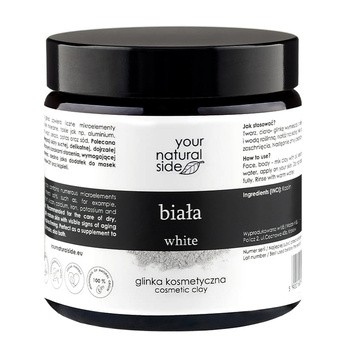 Biała glinka Your Natural Side to czysta, naturalna glinka kosmetyczna, która działa jak delikatny detoks skóry. Jej jedwabista, ultra-lekka struktura pozwala na głębokie, a jednocześnie łagodne oczyszczenie porów, usunięcie nadmiaru sebum i zanieczyszczeń. Może być stosowana solo jako maska lub jako składnik Twoich kosmetyków DIY – maski czy peelingu. Jej uniwersalna natura sprawia, że doskonale sprawdza się również dla skóry wrażliwej.