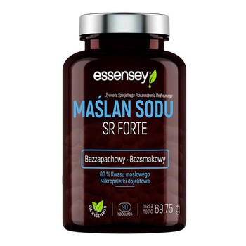 Essensey Maślan Sodu SR Forte - to żywność specjalnego przeznaczenia medycznego. Produkt przeznaczony dla dorosłych i dzieci powyżej 7. roku życia. Produkt w postaci kapsułek, który zawiera maślan sodu w postaci mikropeletek SR.
