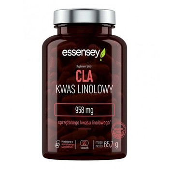 Essensey CLA - to suplement diety w postaci kapsułek, który zawiera kwas linolowy (CLA). Produkt przeznaczony dla osób dorosłych.