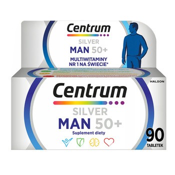 Centrum SIlver Man 50+ - to suplement diety w formie tabletek, który w swoim składzie zawiera witaminy i minerały. Produkt przeznaczony dla dorosłych mężczyzn.