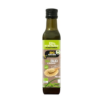Bio olej sezamowy tłoczony na zimno to ekologiczny olej roślinny pozyskiwany z nasion sezamu indyjskiego pochodzących z kontrolowanych upraw. Proces mechanicznego tłoczenia bez użycia ciepła pozwala zachować naturalny charakter surowca oraz jego intensywny smak i aromat. Olej sezamowy wyróżnia się wyrazistym profilem smakowym, dzięki czemu doskonale sprawdza się jako dodatek do potraw kuchni azjatyckiej, a także do sałatek, sosów i dań na zimno. Produkt posiada certyfikat ekologiczny.