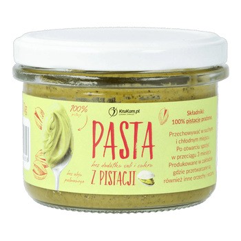 Pasta została przygotowana z 100% prażonych pistacji, bez dodatku cukru, soli, oleju palmowego oraz innych ulepszaczy. Pistacje są naturalnym źródłem białka, zdrowych tłuszczów oraz błonnika, a także witamin i minerałów. To idealny wybór do codziennego stosowania – na kanapki, do owsianki, naleśników, deserów czy wypieków. Każda łyżeczka to czysta przyjemność i pistacjowa jakość, którą widać i czuć od pierwszego spróbowania.