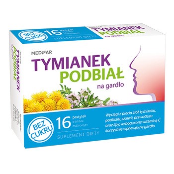 MEDiFAR Tymianek i podbiał na gardło, pastylki, bez cukru, 16 szt.