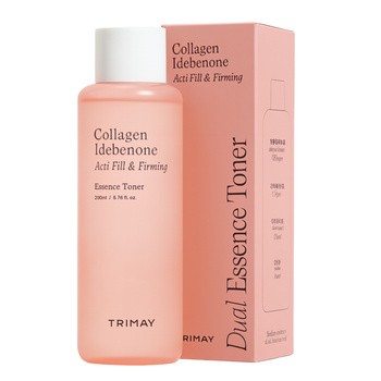 Trimay Collagen Idebenone Dual Essence Toner to innowacyjne połączenie toniku i esencji, stworzone z myślą o pielęgnacji skóry potrzebującej ujędrnienia, wygładzenia oraz intensywnego nawilżenia. Dwufunkcyjna formuła działa jak pierwszy krok pielęgnacji anti-aging, przygotowując skórę na kolejne etapy rutyny. Skóra po aplikacji staje się wyraźnie bardziej nawilżona, a także sprężysta, a drobne linie są mniej widoczne.