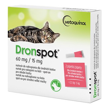 Dronspot 60 mg / 15 mg, roztwór do nakrapiania dla średnich kotów od 2,5 do 5 kg, 2 x 0,7 ml