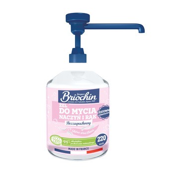 Briochin, żel do mycia naczyń i rąk na bazie mydła marsylskiego posiada formułę 2w1: jeden produkt do skutecznego mycia naczyń oraz delikatnej pielęgnacji rąk. Oparty jest na mydle marsylskim. Efektywnie usuwa tłuszcz, a takze zaschnięte zabrudzenia. Produkt testowany dermatologicznie. Opakowanie uzupełniające pozwala ograniczyć ilość plastikowych odpadów, a skoncentrowana formuła zapewnia dużą liczbę użyć.