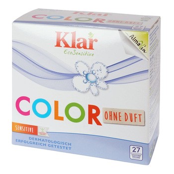 Klar, proszek do prania kolorowych ubrań – ekologiczny detergent przeznaczony do codziennego prania tkanin kolorowych. Skutecznie usuwa zabrudzenia, jednocześnie wspierając pielęgnację włókien i utrzymanie intensywności kolorów. Dzięki starannie dobranym składnikom produkt sprawdza się w różnych warunkach prania, a jego wydajna formuła pozwala wykonać około 27 prań z jednego opakowania. W składzie znajdują się m.in. zeolity, mydła z oleju roślinnego, anionowe i niejonowe środki powierzchniowo czynne pochodzenia roślinnego oraz ekstrakt z orzechów mydlanych. Dodatek skrobi ryżowej wspiera komfort użytkowania, m.in. ułatwiając prasowanie.