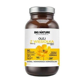 Big Nature Olej z wiesiołka - to suplement diety w postaci kapsułek, który zawiera olej z wiesiołka. Produkt przeznaczony dla osób dorosłych.