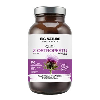 Big Nature Olej z ostropestu - to suplement diety w formie kapsułek, który w swoim składzie zawiera olej z nasion ostropestu. Produkt przeznaczony dla dorosłych.