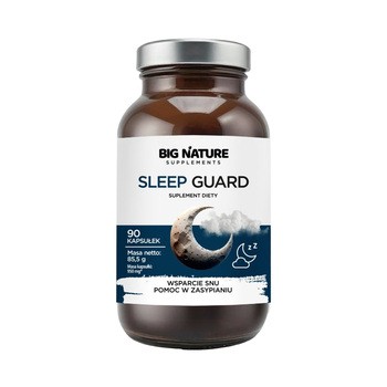 Big Nature Sleep Guard - to suplement diety w postaci kapsułek, który zawiera ekstrakty z Ashwagandhy, chmielu oraz męczennicy cielistej, a także melatoninę. Produkt przeznaczony dla osób dorosłych.