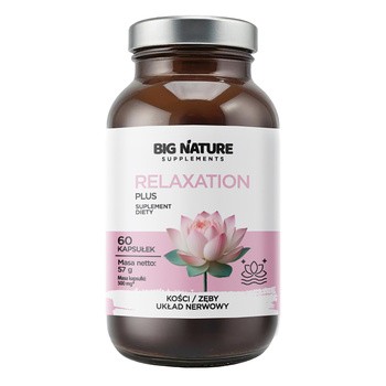 Big Nature Relaxation Plus - to suplement diety w postaci kapsułek, który zawiera L-tryptofan oraz ekstrakty z waleriany i szyszek chmielu. Produkt przeznaczony dla osób dorosłych.
