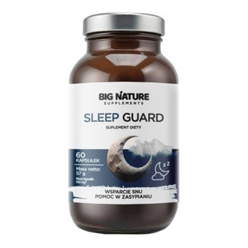 Big Nature Sleep Guard - to suplement diety w postaci kapsułek, który zawiera ekstrakty z Ashwagandhy, chmielu oraz męczennicy cielistej, a także melatoninę. Produkt przeznaczony dla osób dorosłych.